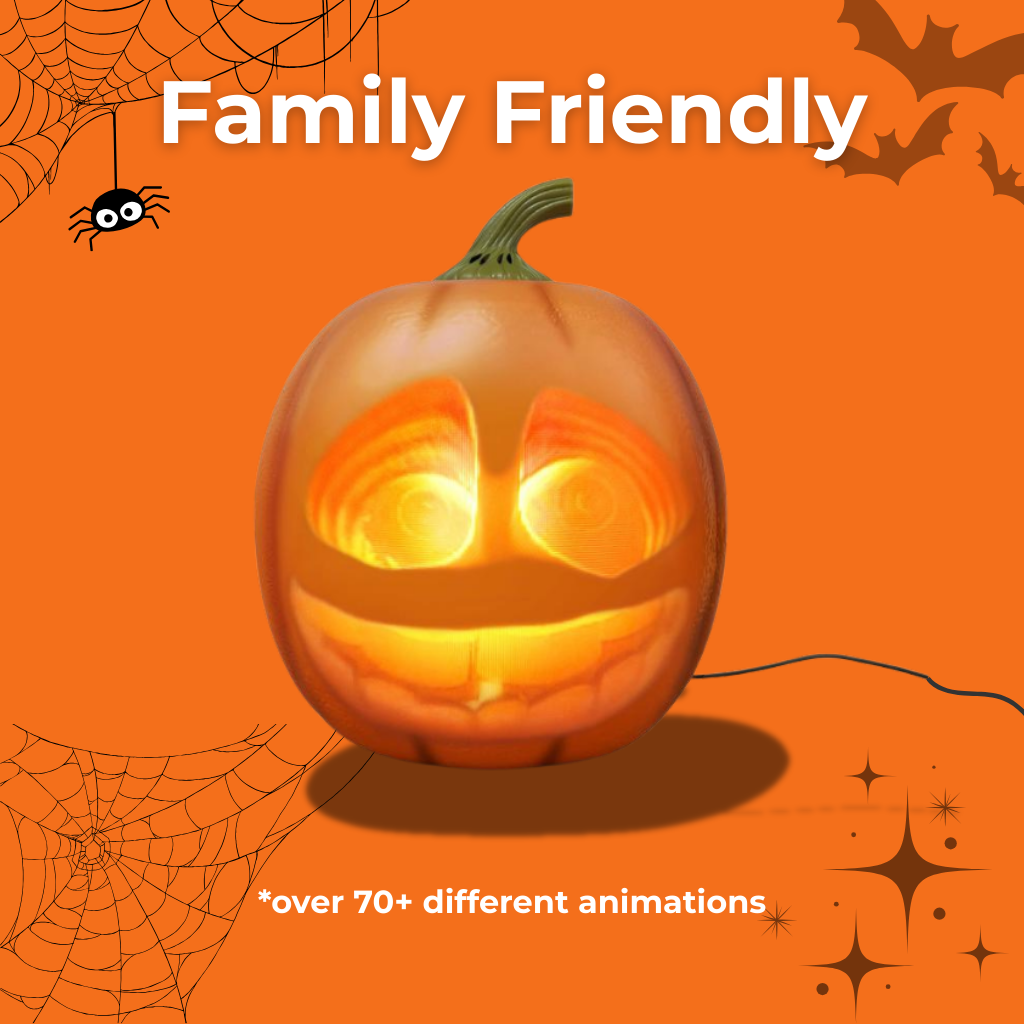 Plug it in or pop in 3 AA batteries, press play, and your pumpkin instantly comes to life with animated faces, songs, and spooky jokes. No carving, no mess, just pure Halloween magic in seconds.
